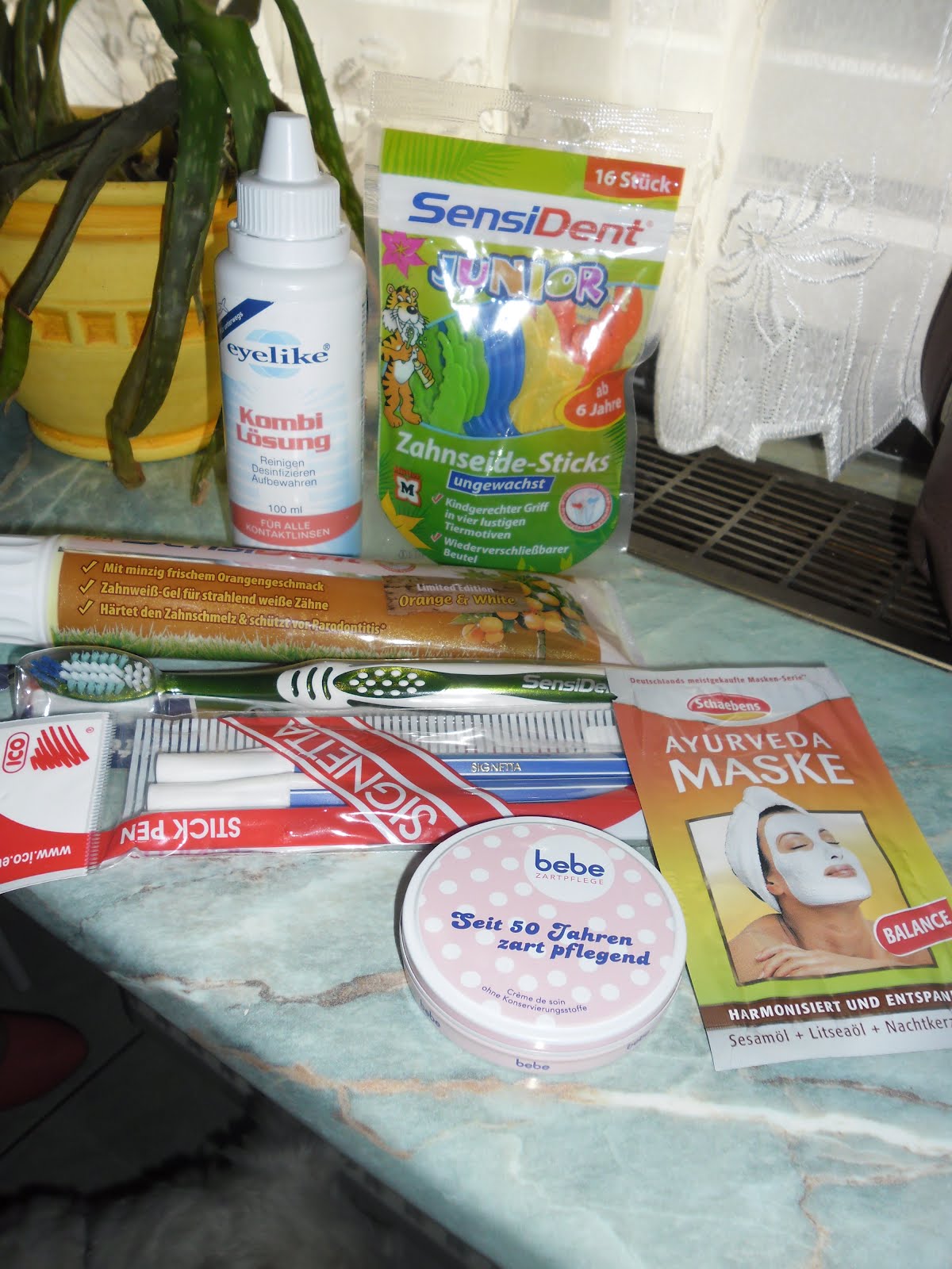 Csak olyan dolgokat vettem, amire szükség volt; narancsos fogkrémet, cuki fogselyemmel és fogkefével; mini bebe testápolót szülinapi fémdobozban; gagyi tollat (imádok ilyennek írni); egy lencsefolyadékot és egy ayurvédikus arcmaszkot. Mondtam már, hogy büszke vagyok magamra? 😀 xoxo