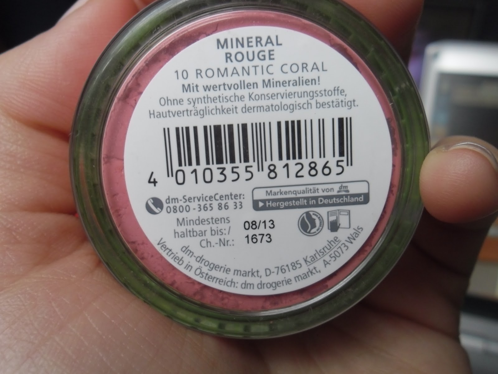 Jó sok Alverde termék volt leakciózva, gyorsan le is csaptam egy pirosítóra (már van egy és imádom), az árnyalata Romantik coral. Habár korallost sejtet, inkább rózsaszínes és nagyon csillámos. Szépen építhető, a pigmentáltsága megfelelő. Az illata tipikus púredes-vintage, én szeretem. Az egyetlen problémám vele, hogy nem a legpraktikusabb a kialakítása, minden kinyitásnál veszítünk egy kis púdert.