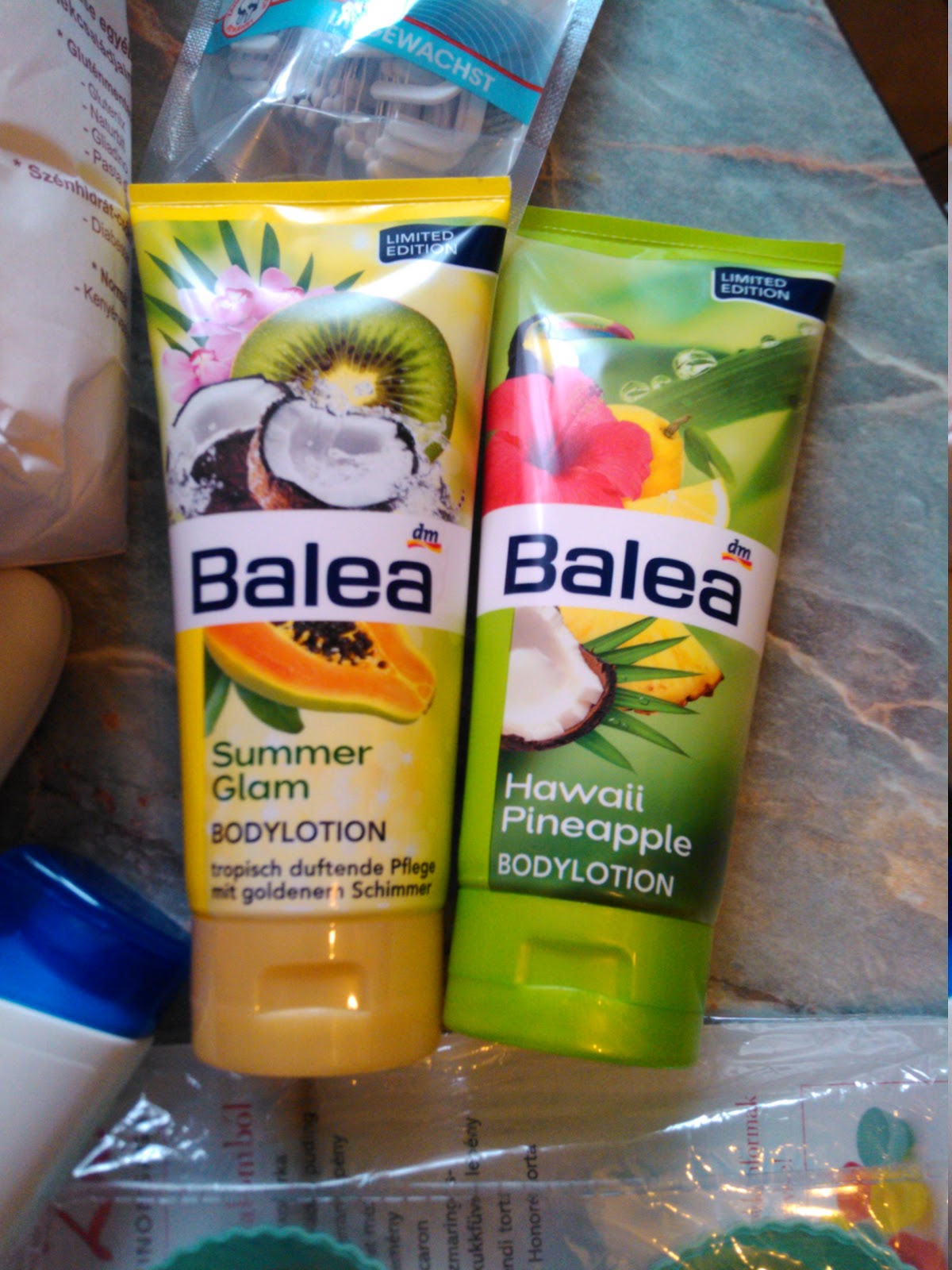 Erre a két Baleás testápolóra leltem rá, nagyon bejönnek! Alapból imádom inni-enni-szaglászni az egzotikus gyümölcsöket, ezért már a csomagolás láttán összefutott a nyál a számban. Summer Glam krém illatában a kókusz dominál, engem a naptejre emlékeztet, nagyon kellemes. Maga a kence arany csillámokkal van teli és még picit színezi is a bőrt, ezért tökéletes választás nyárra. A Hawaii Pineapple értelemszerűen érett ananászillatú, laza, vizes krém; szintén szuper nyárra. Van belőlük tusfürdő is, én úgy érzem, be fogok raktározni belőlük 🙂