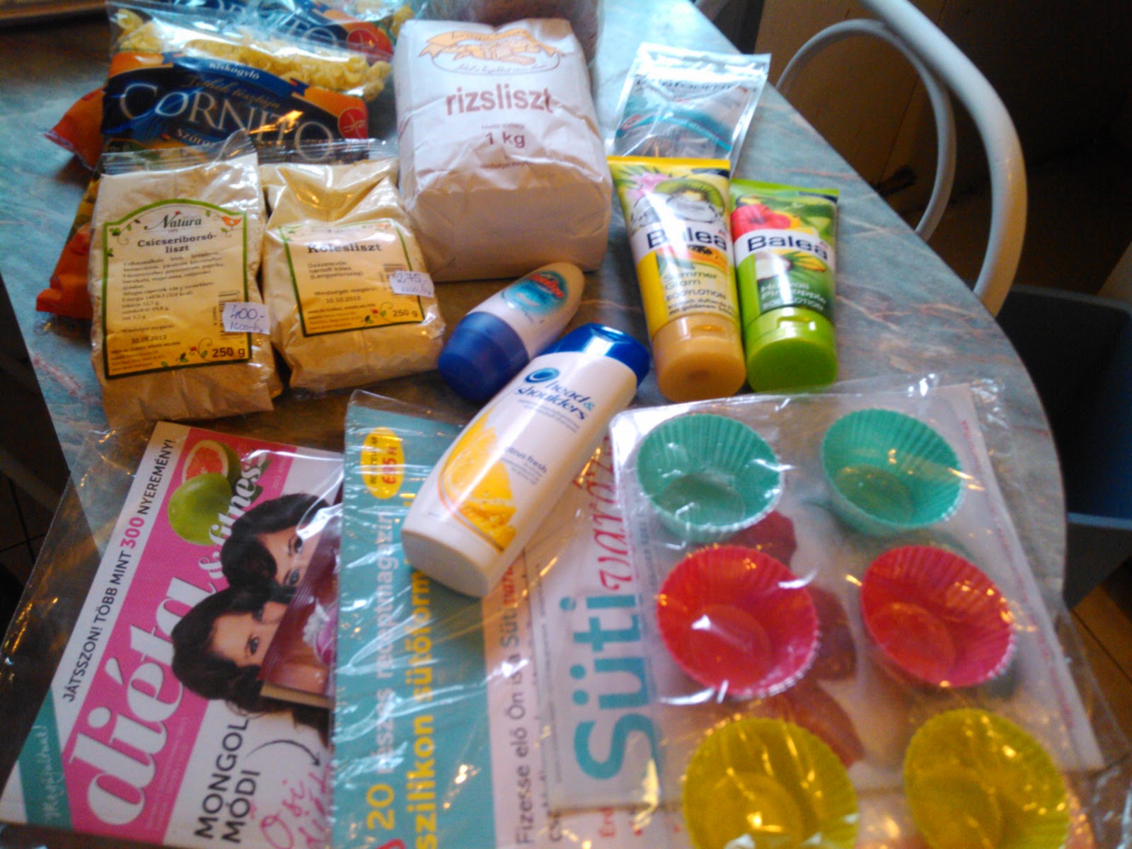 Bevásároltam gluténmentes kajákból, mert hiányoznak a sütik 😀 A másik mániám az új magazin, a Süti varázs, még csak az első van meg, mert a másodikkal még nem futottam össze, de ezek a cuki szilikonos ajándékok nagyon bejönnek. A városban járva bementem a DM-be, mert szerettem volna finom gyümölcsös testápolót.