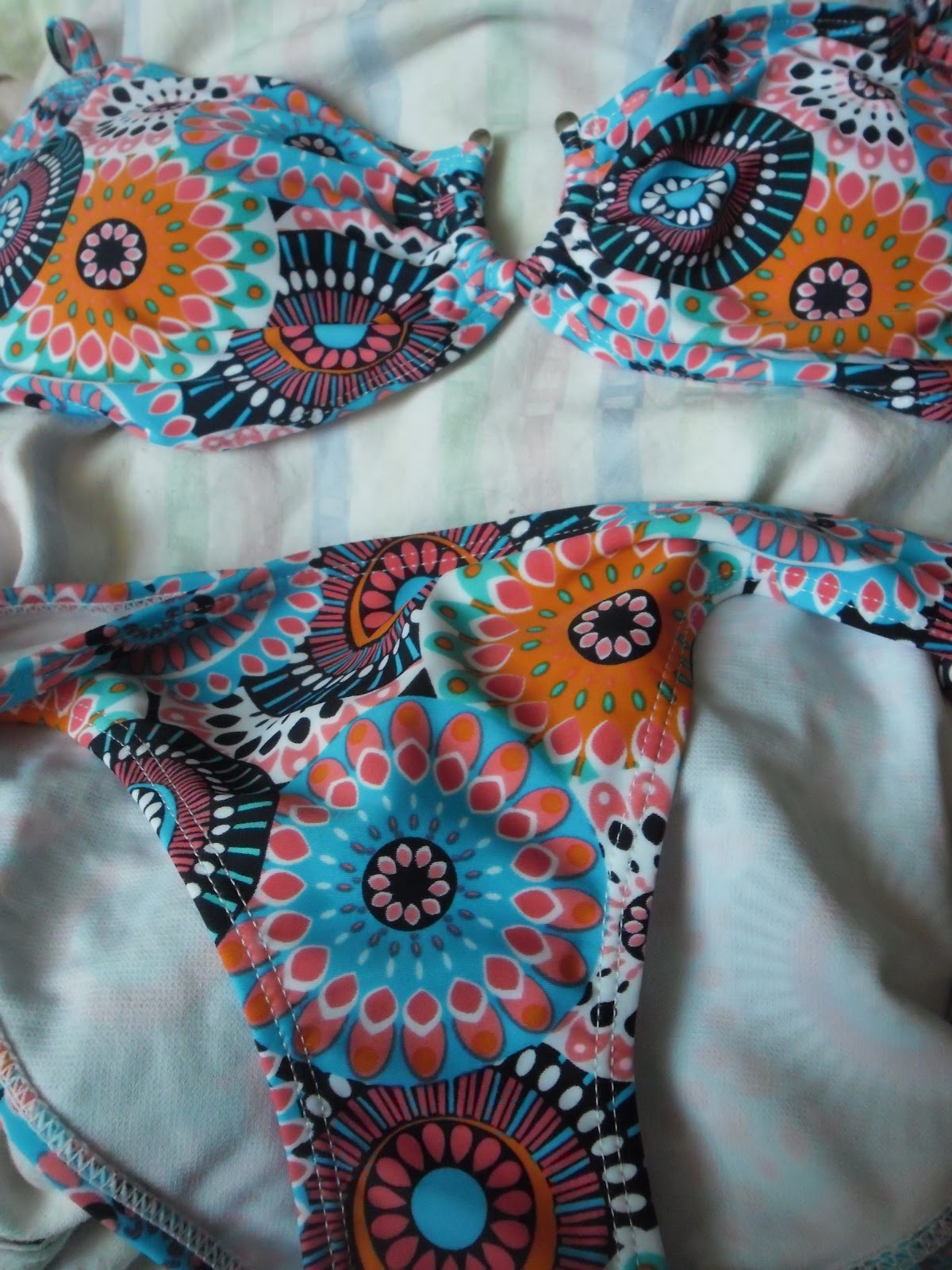 A bikinit muszáj volt megvennem, egyrészt mert gyönyörű a mintája és a fazonja, másrészt a fekete bikinialsóm kalandos körülmények között búcsút intett nekem (lerepült Agárdról hazafelé a visszapillantóról…). Nagyon sürgős, mert 26-28. megyünk wellnesselni (totál rákaptunk a lazítás ízére…) és muszáj lesz vízben áztatni hab testemet.